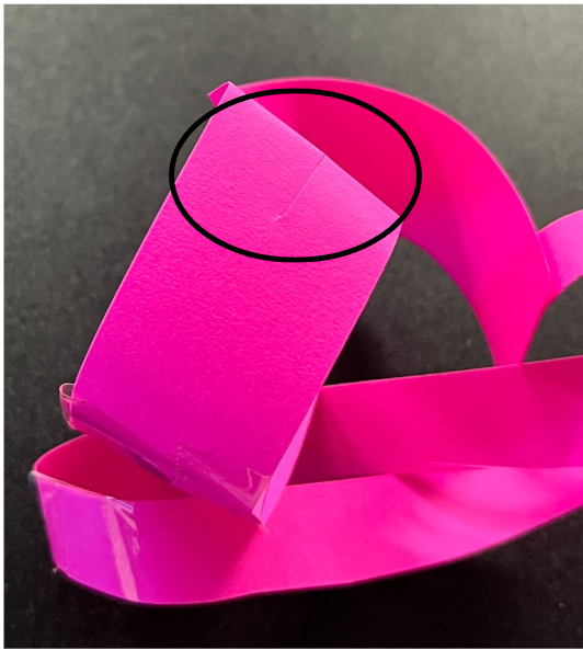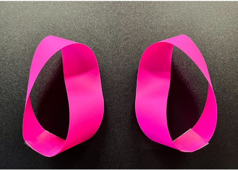 4. You should now have two Möbius loops that are mirror images of each other. Next, you will glue or tape the Möbius loops together at right angles.